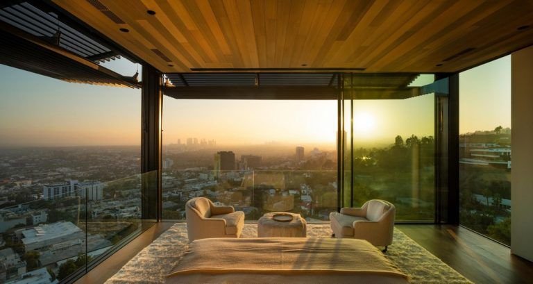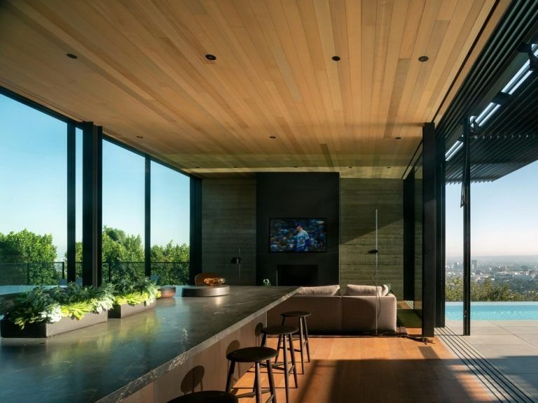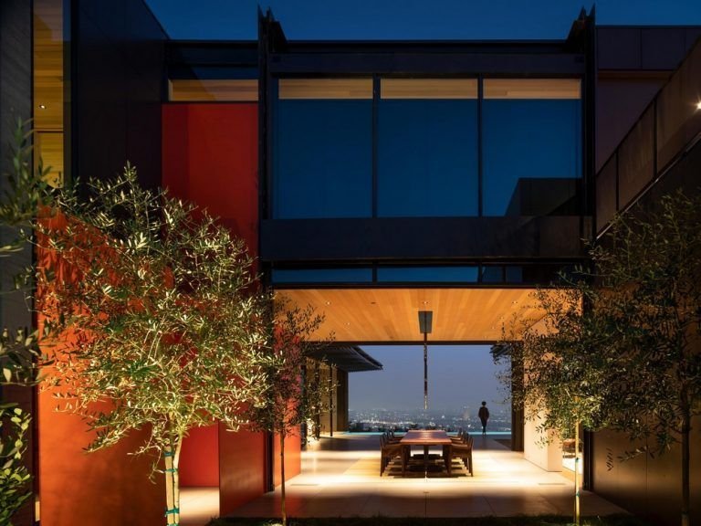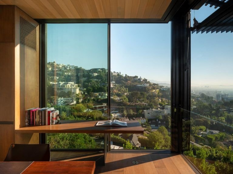 Αυτό το καταφύγιο 15.600 SF στο Δυτικό Χόλιγουντ προσφέρει εκπληκτική θέα στο κέντρο του Λος Άντζελες και στους λόφους του Χόλιγουντ. Ένα κεντρικό μέλημα σχεδιασμού ήταν η μεγιστοποίηση αυτών των όψεων, καθώς και η ασάφεια των ορίων μεταξύ εσωτερικού και εξωτερικού για τη δημιουργία ενός σπιτιού με εκλεπτυσμένο, διακριτικό χαρακτήρα.