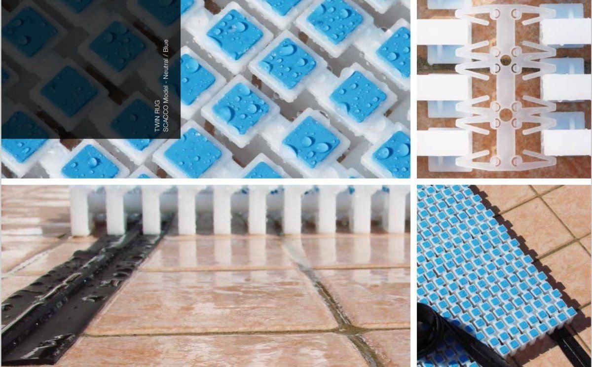 WIN και TWIN TEAK, δύο προϊόντα τα οποία είναι στόχοι της TWIN, ώστε να λάβετε μια νέα λειτουργικότητα στα προϊόντα της. Ενώνοντας τις μονάδες με την κατάλληλη αγκύρωση στο σύστημα, είναι δυνατή η πραγματοποίηση απεριόριστων ορόφων, συμπεριλαμβανομένων: α) χαλάκια ντους, β) δάπεδα αποδυτηρίων και γ) πλακόστρωση κοινόχρηστου χώρου. Το δάπεδο, κατασκευασμένο από την TWIN bi-component (Θερμοπλαστικό ελαστομερές + Πολυπροπυλένιο) εξασφαλίζουν άνεση στην αφή, ασφάλεια και υγιεινή.