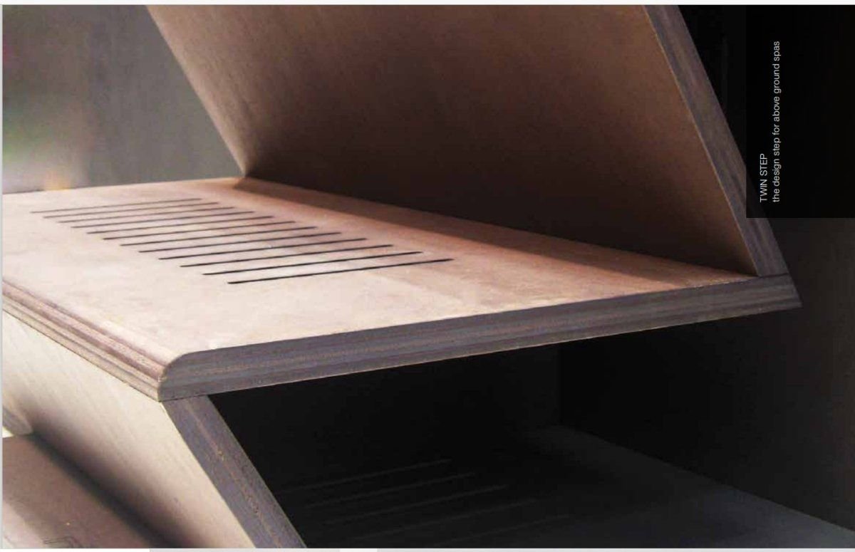 WIN STEP, για σχεδιασμό για πάνω από το έδαφος στο spa, είναι ένα εξαιρετικό χειροποίητο προϊόν στο Okumé (ναυτικό κόντρα πλακέ). Διατίθεται στους παρακάτω χρωματισμούς: ΓΚΡΙ DURMAST: φυσικά κομψό NATURAL DURMAST: η ομορφιά της απλότητας ΚΕΡΑΣΙΑ: παραδοσιακά κόκκινο